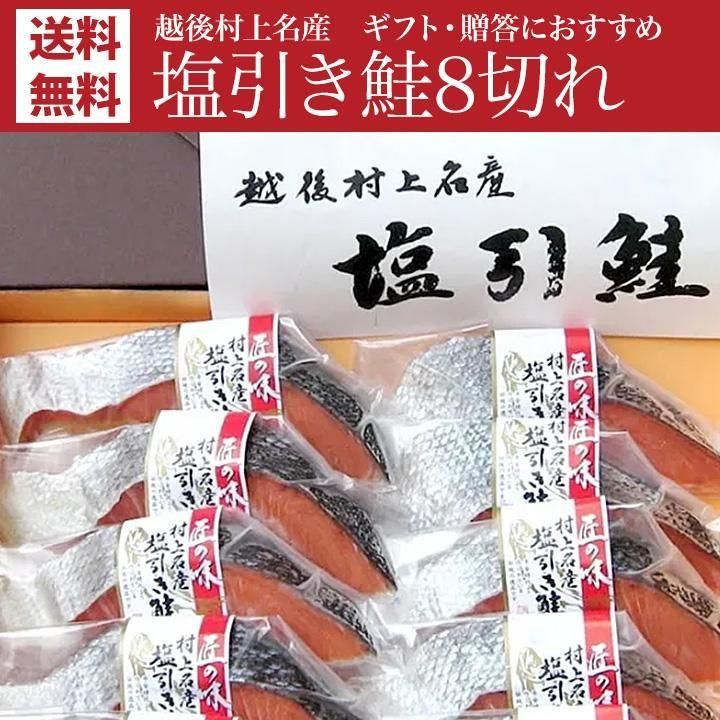 塩引鮭 8切 村上名産 鮭 切り身 【送料無料】 ギフト 真空パック 個別包装 無添加 越後村上名産 新潟 さけ サケ 焼き魚 高級 国産 塩鮭 お取り寄せ 魚 海鮮
